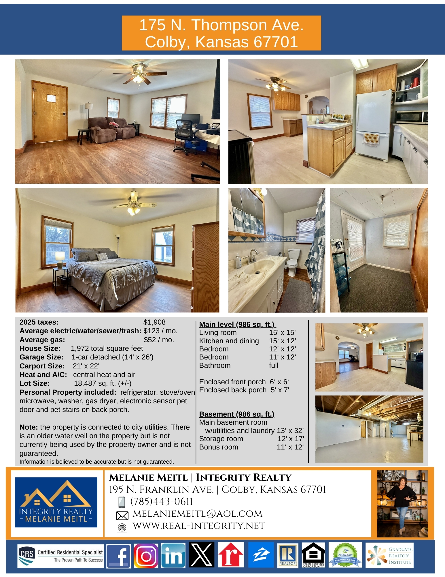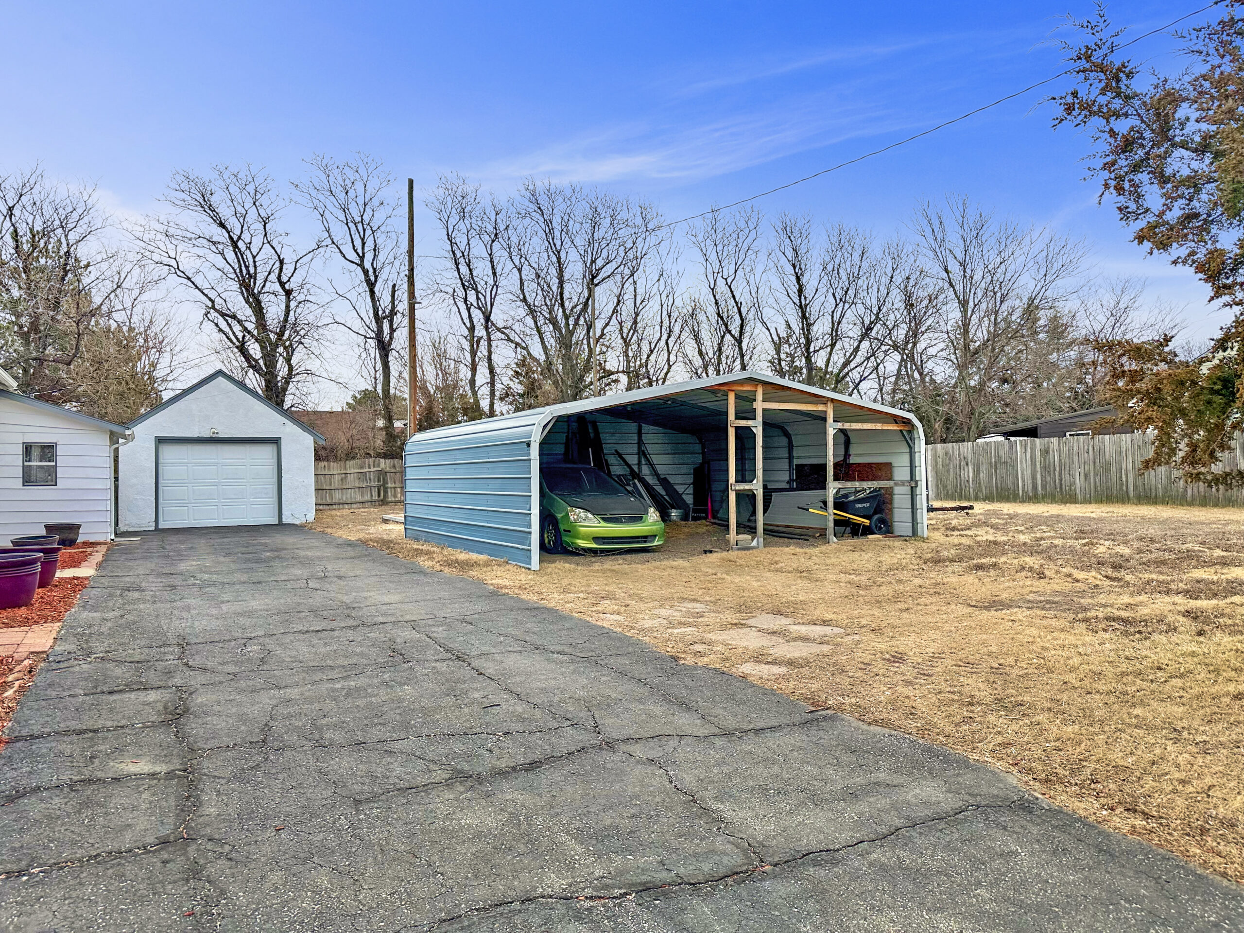 This fantastic lot size is unusual to find and the updated 1,972 square foot home has so many terrific features! On the main level are professionally refinished hardwood floors as well as new kitchen and dining room flooring, 2 large bedrooms with extended closet sizes, 1 bathroom, and the convenient enclosed front and back porches. The clean basement is a blank canvas and has a large open main room with the laundry and utility area, big storage room, and a flexible bonus room to use as an office or home gym, or even add a closet for a bedroom. There is a 1-car detached garage with a new overhead door, a 21’ x 22’ carport, a fenced yard, and so much room for expansion on this corner lot. This home also has steel siding and an updated higher grade impact resistant shingled roof! Contact Melanie Meitl, Integrity Realty, at 785.443.0611.